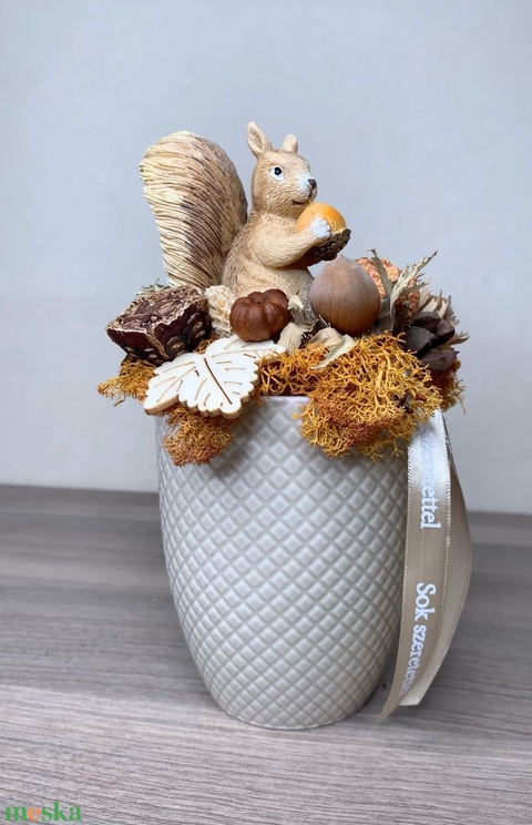 - Anyaga: kerámia bögre, polyresin figura, zuzmó, szalag, termések