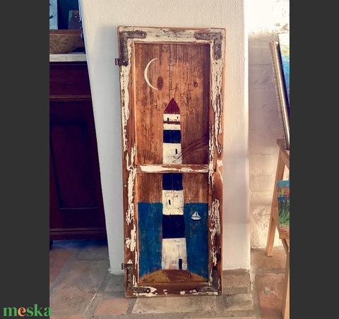 Világítótorony - Ajándék ötlet, Rusztikus Dekoráció, Fatábla, Ablak, Tenger, Gyerekszoba, Vitorlás