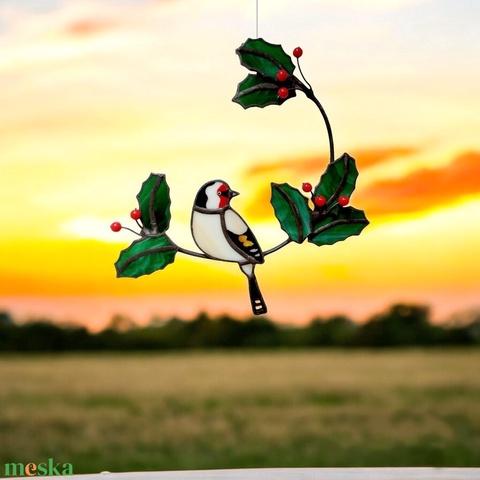 Tengelic madár - Őszi ablakdekoráció üvegből