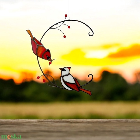 Vörös pintyek - Szerelmespár üveg ablakdekoráció