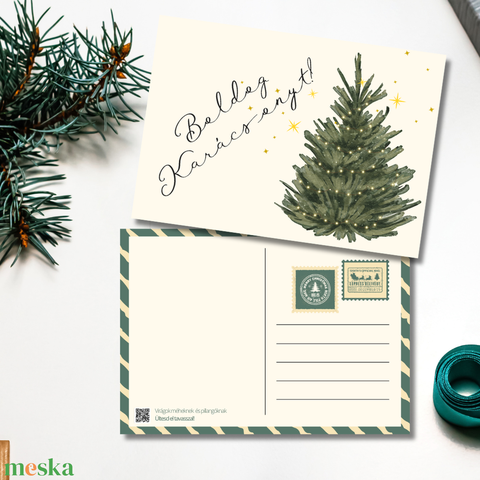 Karácsonyi képeslap virágmagokkal, fenyőfás