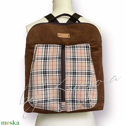 Hátizsák, hátitáska - barna kordbársony, kockás
