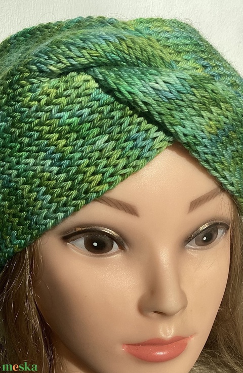 Zöld kék kézzel festett, Kötött Merino Gyapjú egyedi Csavart Fejpánt Fülmelegítő