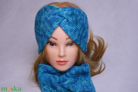 Kék kézzel festett, Kötött Selyem Merino Gyapjú egyedi Csavart Fejpánt Fülmelegítő