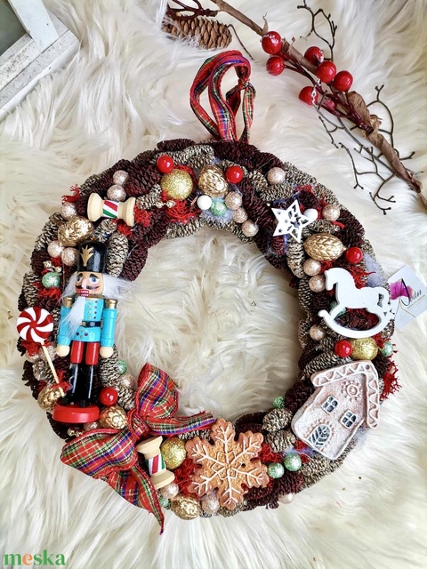 AKCIÓ! Diótörő mézeskalács ajtódísz, karácsonyi kopogtató
