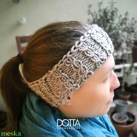 Sportos fejpánt csavart mintával - puha meleg gyapjú fonalból kézzel kötve - női fülmelegítő