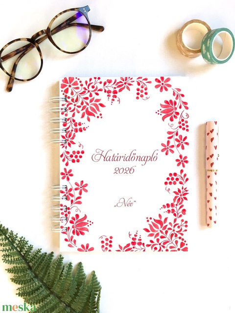 Kalocsai mintás, egyedi borítós határidőnapló 2026