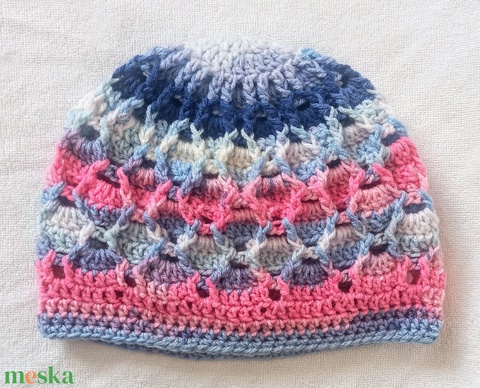 Vidám színű, középvastag, horgolt sapka, 54-60 cm