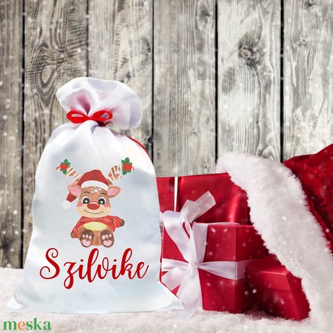 Mikulás zsák egyedi névvel bébi szarvas (2.minta)