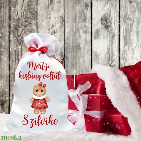 Mikulás zsák egyedi névvel lány mézi süti (12.minta)