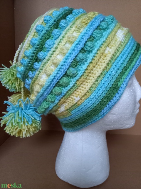 Horgolt, pomponos sapka, kézzel készült, egyedi