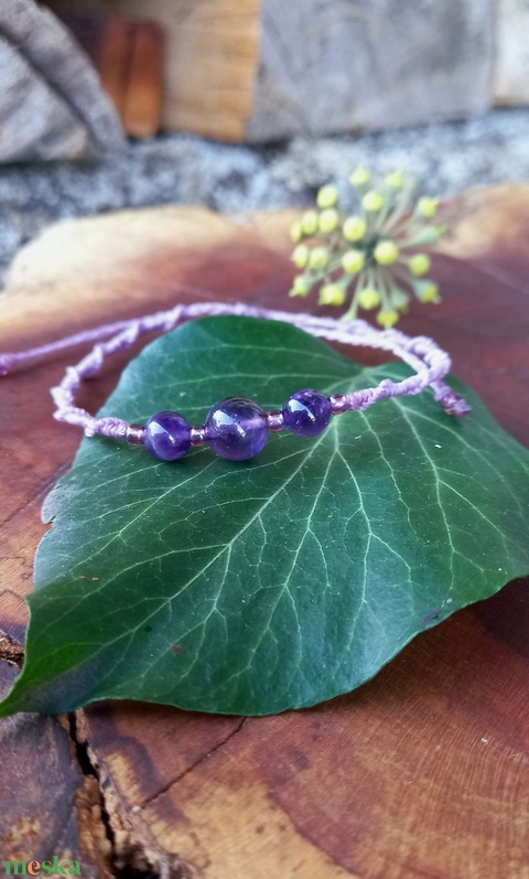 - Anyaga: linhasita viaszolt szál, japán kásagyöngy, ametiszt ásványgolyó