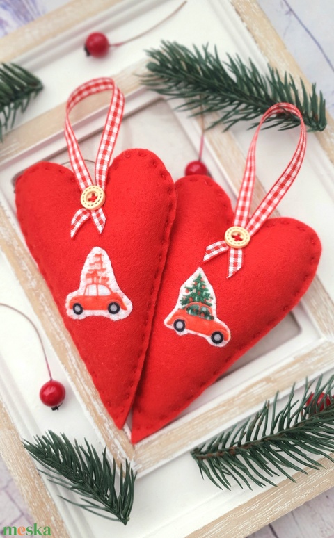 Bababarát hímzett karácsonyi filc szívek