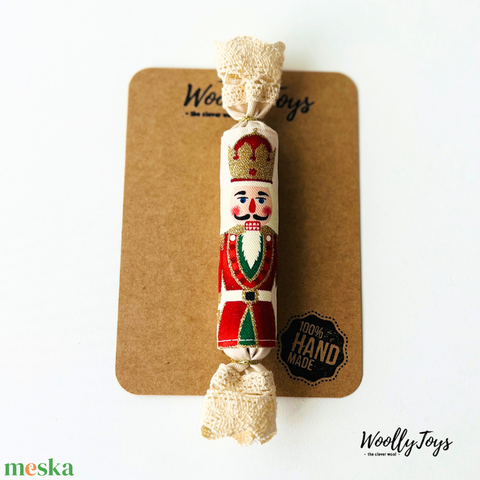 Diótörő textil szaloncukor PIROS karácsonyfadísz, függődísz ADVENTI KOLLEKCIÓ 2025