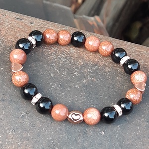 - Anyaga: strasszos rondellák, gumis damil, homokkő gyöngyök, ónix, köztesek