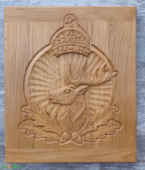 szarvaskép vadászkép szarvasfaragás falikép vadászajándék fakép falikép szarvaspár korona hubertus trófeaalátét tölgyfa