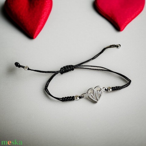 Csomózott makramé karkötő nemesacél szív szívhang medállal