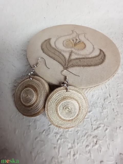 Szürke és bézs fonal fülbevaló, Textil fülbevaló, textil ékszer, fonalékszer
