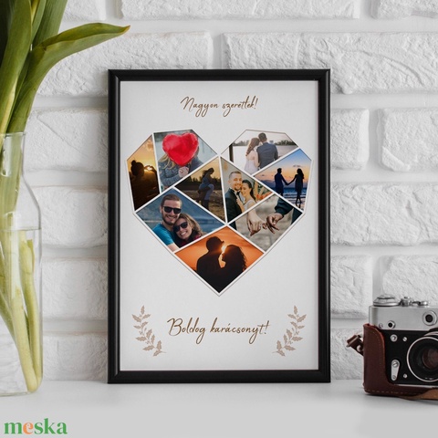 Karácsonyi szív alakú fotókollázs A/4-es méretben (digitális kép vagy fotópapírra nyomtatva, keretezve)