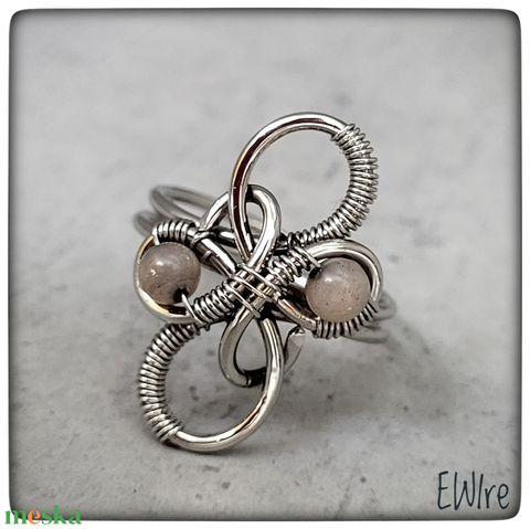 Nonfiguratív gyűrű krém holdkővel, orvosi fém gyűrű