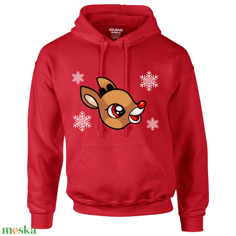 Karácsonyi kapucnis felnőt pulóver Bébi Rudolffal
