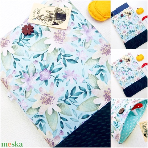 Könyvtok, tablettok, rózsaszín virágok, vízhatlan