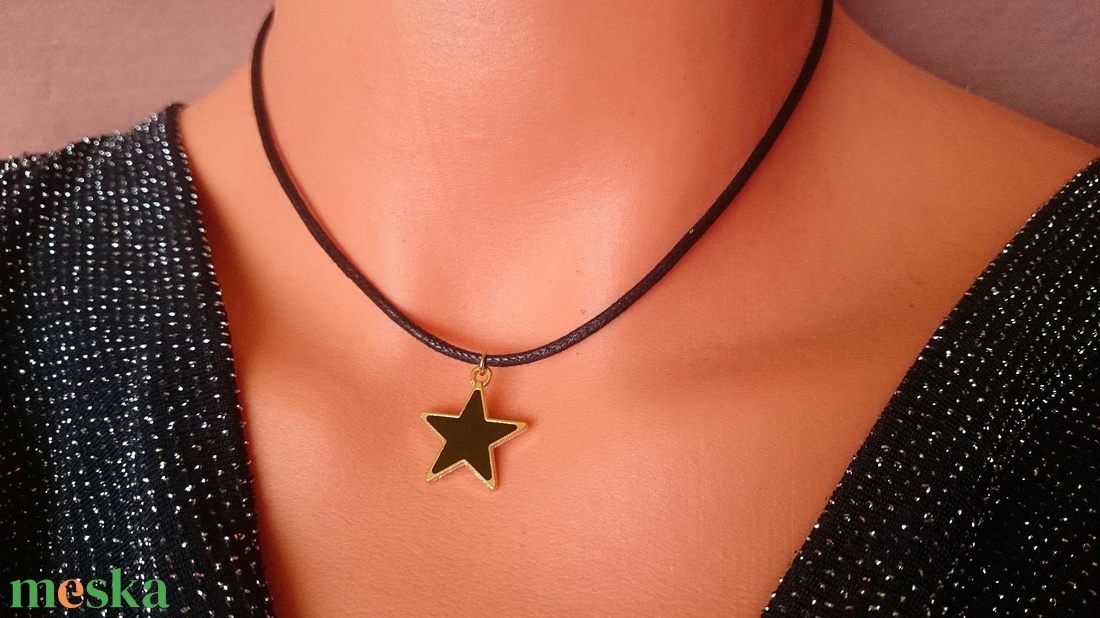 Csillag medál nyaklánc rövid fekete bőrszálon
