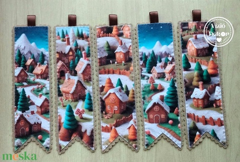 5 db-os téli mézeskalács házikó mintás filc könyvjelző szett