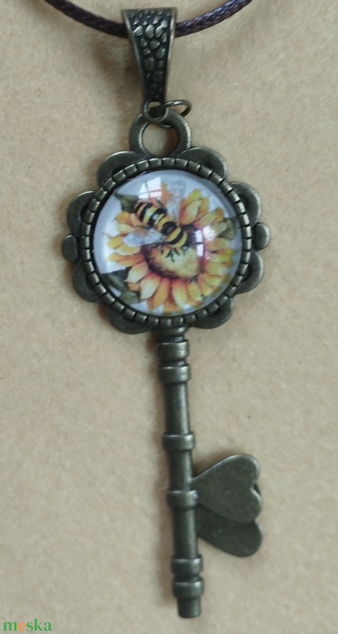Kulcsos üveg lencsés nyaklánc napraforgóval, méhecskével