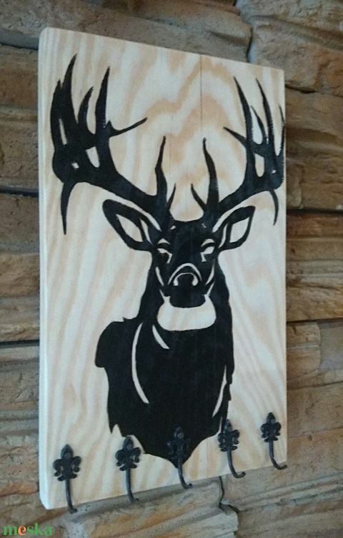 Szarvas sziluettel díszített kézműves fali kulcstartó