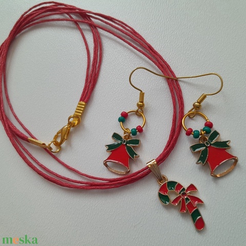Fülbevaló, nyaklánc szett - karácsonyi cukorka, harang
