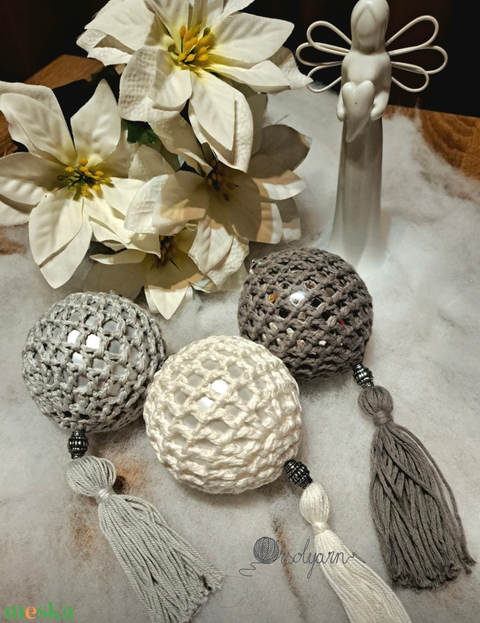 Horgolt karácsonyi gömb szett - 3 darabos kézzel készült dekoráció
