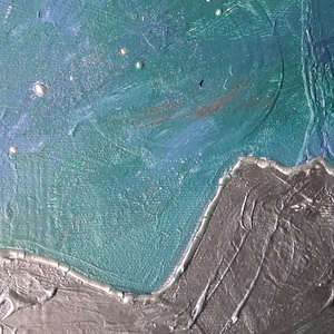 vászon, türkiz akrilfesték, stencilfesték, kontrfesték, csillámpor