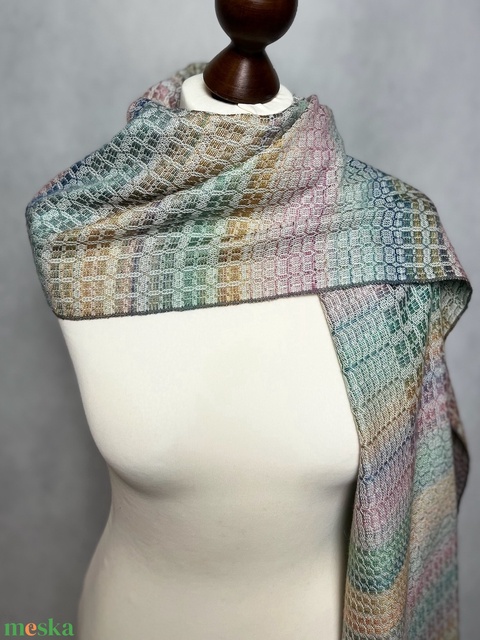Kézzel szőtt elegáns Szívárvány színátmenetes Teveszôr és Selyem Kendő