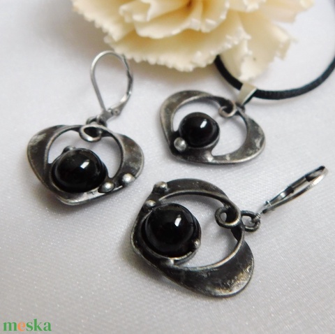 A fülbevaló tiffany technikával készült ólommentes, ezüsttartalmú ón, réz és turmalin felhasználásával. A díszítés szintén saját készítésű, nem tartalmaz gyári elemeket. A díszítés szintén saját készítésű, nem tartalmaz gyári elemeket.A fémrészt óezüstre patináztam és lelakkoztam, hogy sokáig szép maradjon.