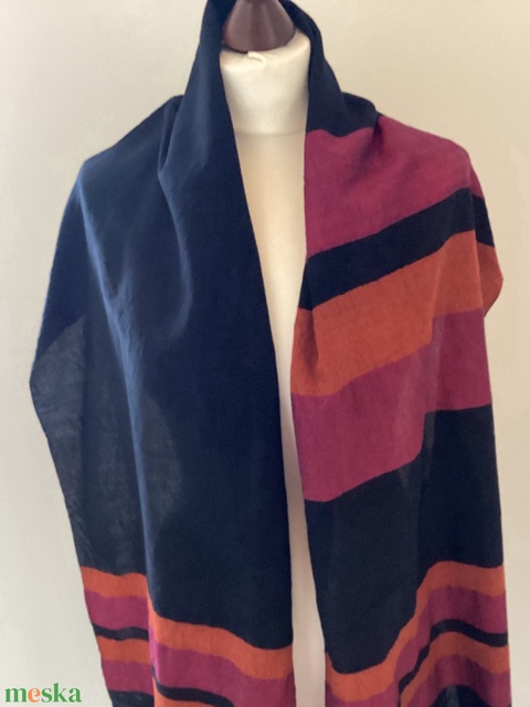 Kézzel szőtt elegáns Merinó Sötétkék narancs pink Kendő