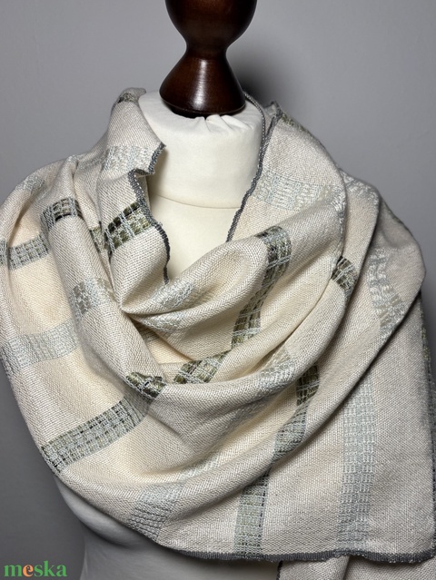 Kézzel szőtt rusztikus Mulberry Selyem - Merinó Nyers Zöld Kendő