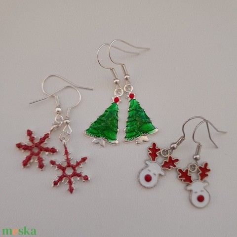 Karácsonyi fülbevaló csomag - hópihe, fenyőfa, szarvas