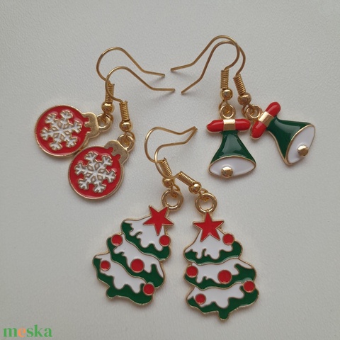 Karácsonyi fülbevaló csomag - fenyődísz, karácsonyfa, harang