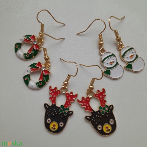 Karácsonyi fülbevaló csomag - adventi koszorú, szarvas, hóember