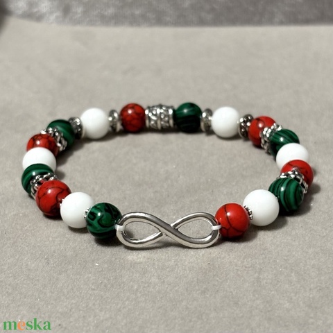 Magyar Nemzeti színű ásvány karkötő végtelen jel medállal