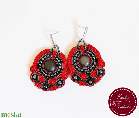 Elegáns piros-fekete sujtás fülbevaló alkalmi
