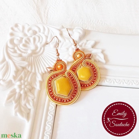 Sujtás fülbevaló aranysárga égetett kerámiával