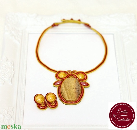 Jáspis nyaklánc és fülbevaló sujtás ékszerszett