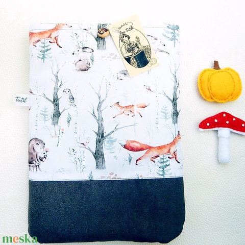 Könyvtok, tablettok, téli erdei állatos vízhatlan