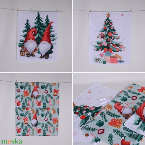 3 db-os szett Karácsonyi manó mintás konyharuha, Kéztörlő