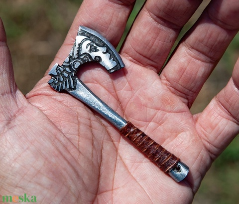 Viking mintázatú, acél mini fejsze