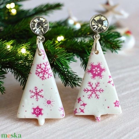 339. Karácsonyfa alakú fehér-rózsaszín fülbevaló