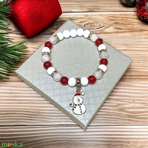 Női karácsonyi ásványkarkötő hóember medállal 5412557