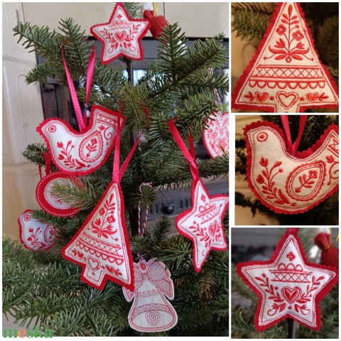 Skandináv stílusú hímzett karácsonyi filcdísz 3db